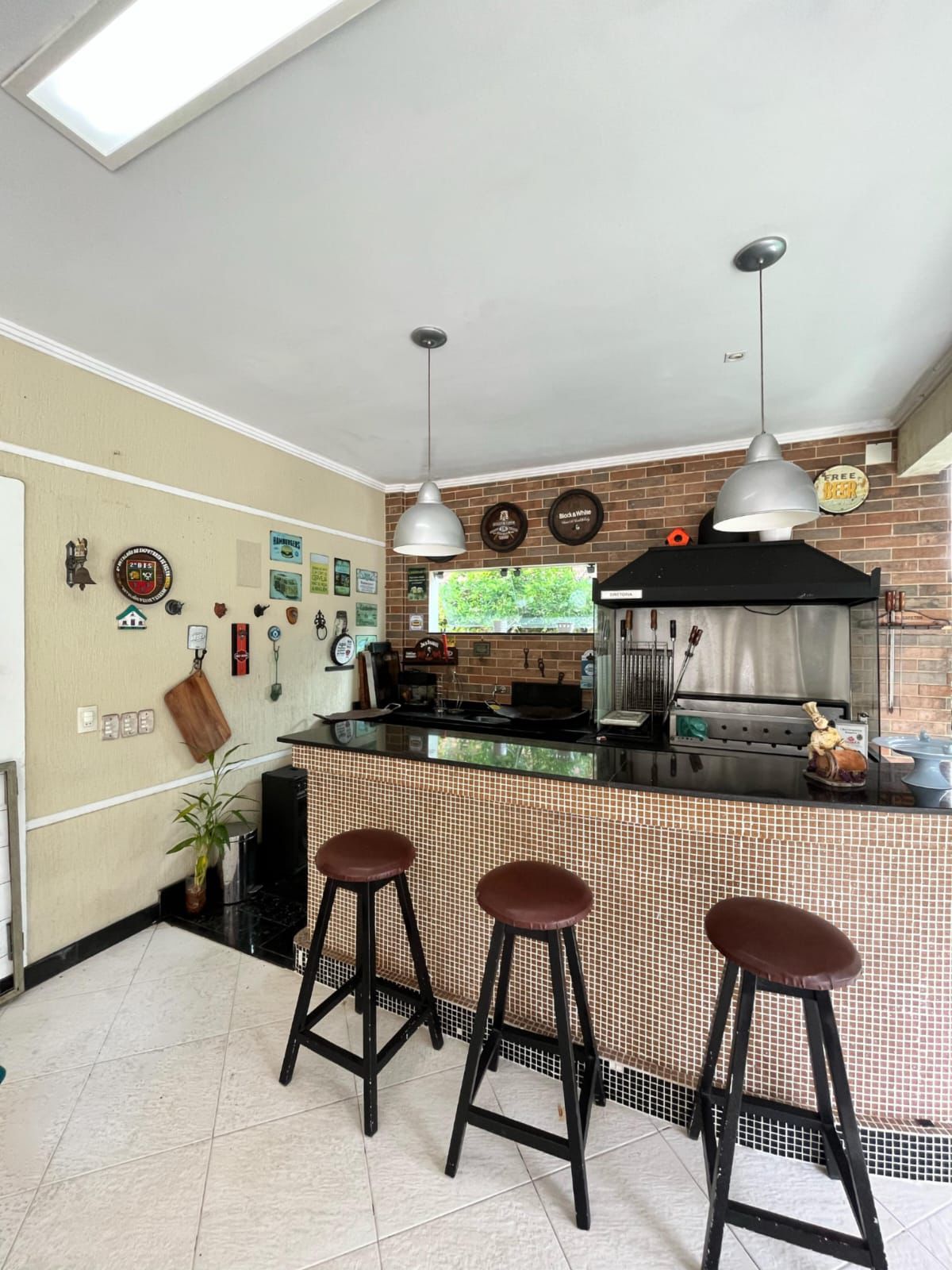 Área gourmet para recepções e confraternizações com churrasqueira, anexa à piscina